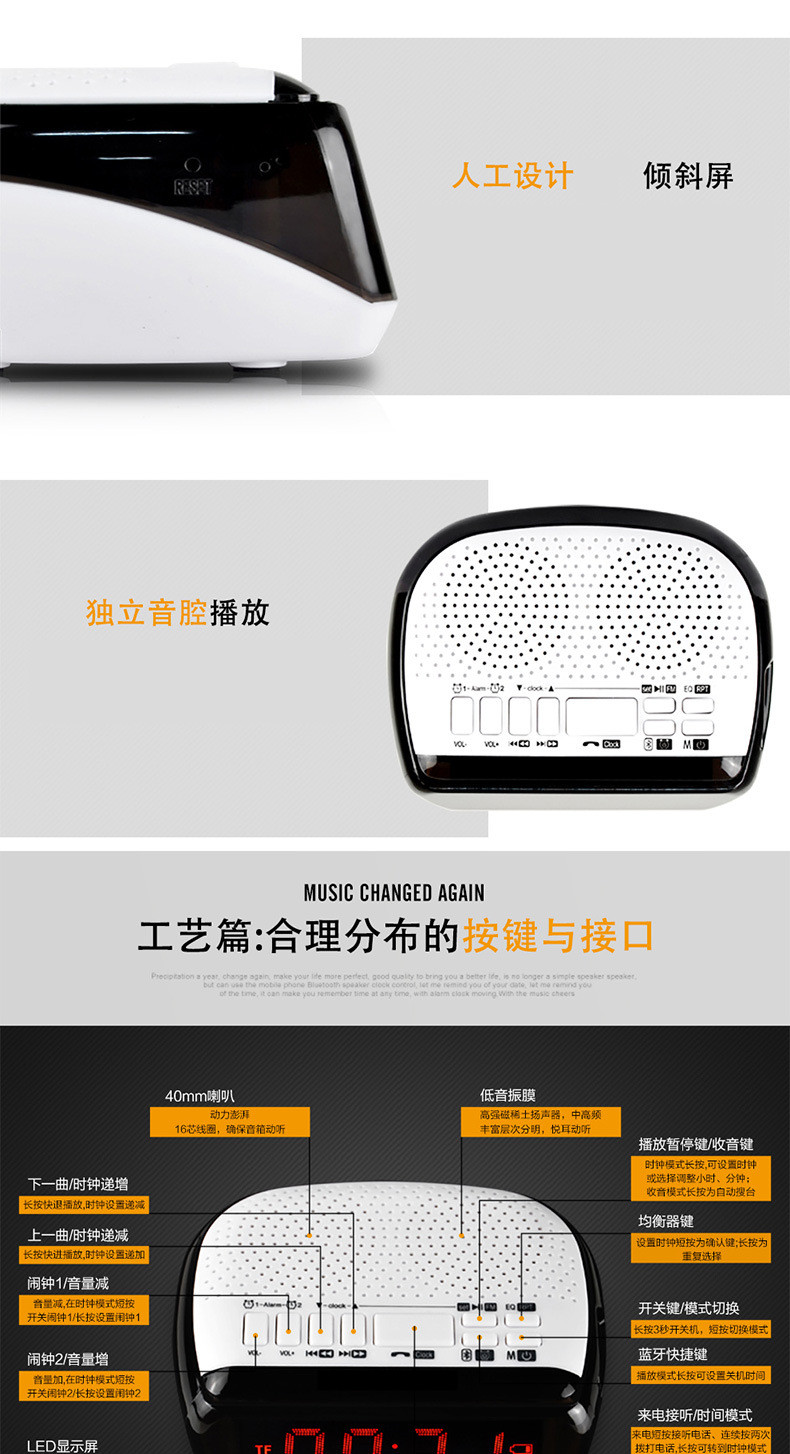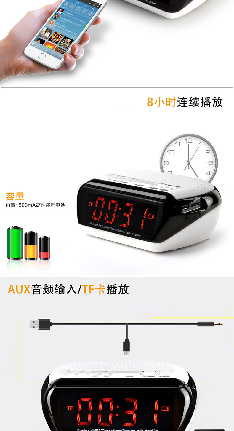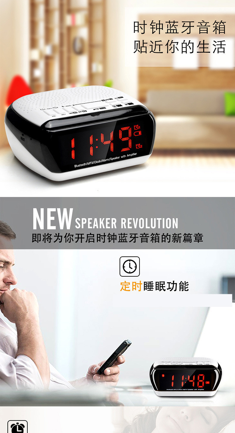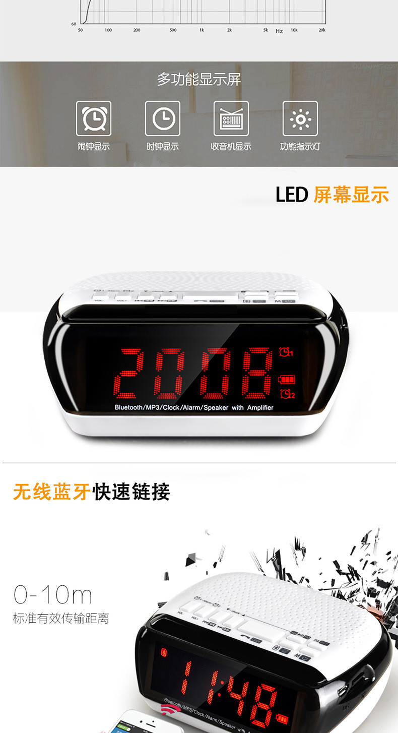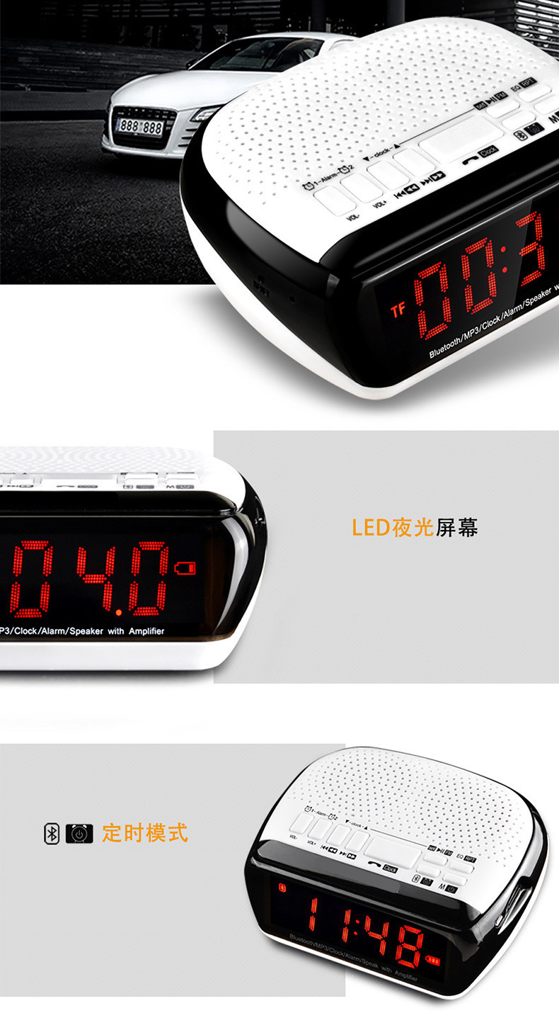 • 商品名称:硕兆 智能无线蓝牙音箱 重低音炮 便携式迷你电脑音响 台式创意闹钟 小钢炮户外插卡 TF内存卡收音机 白色