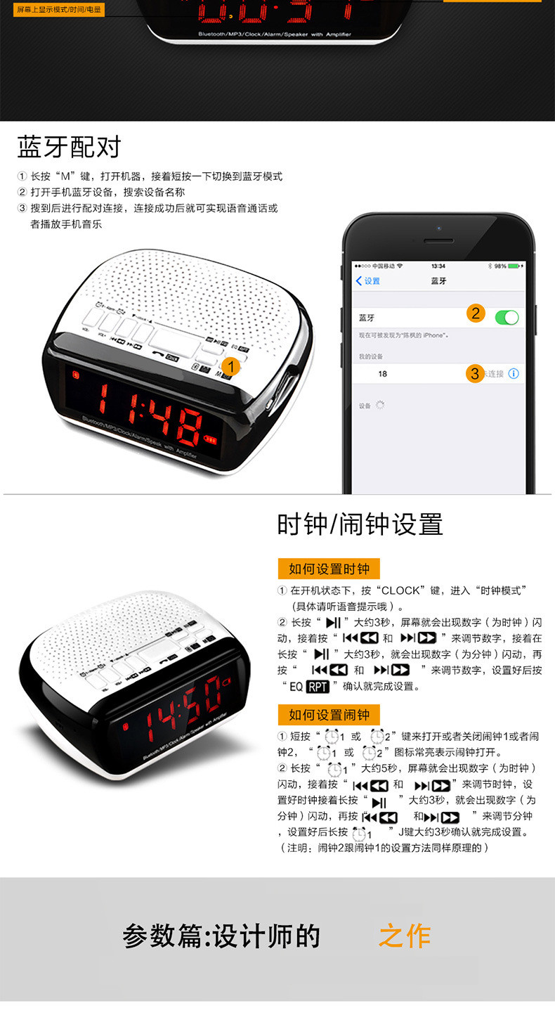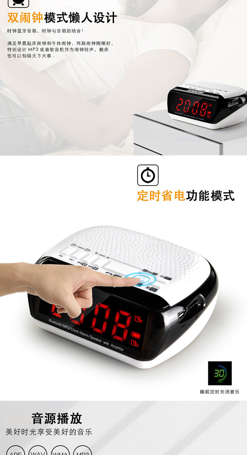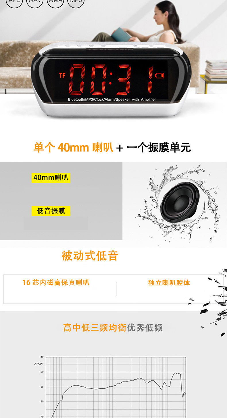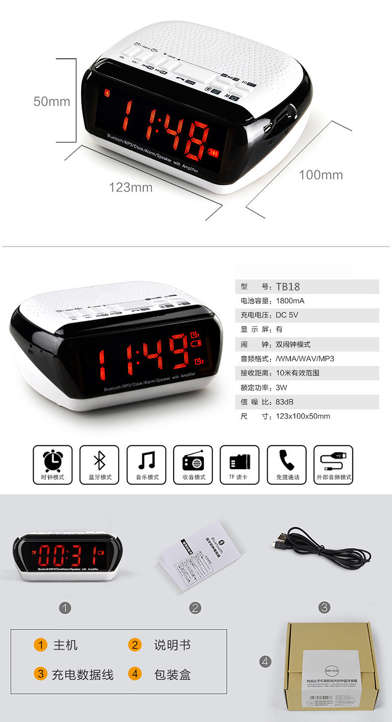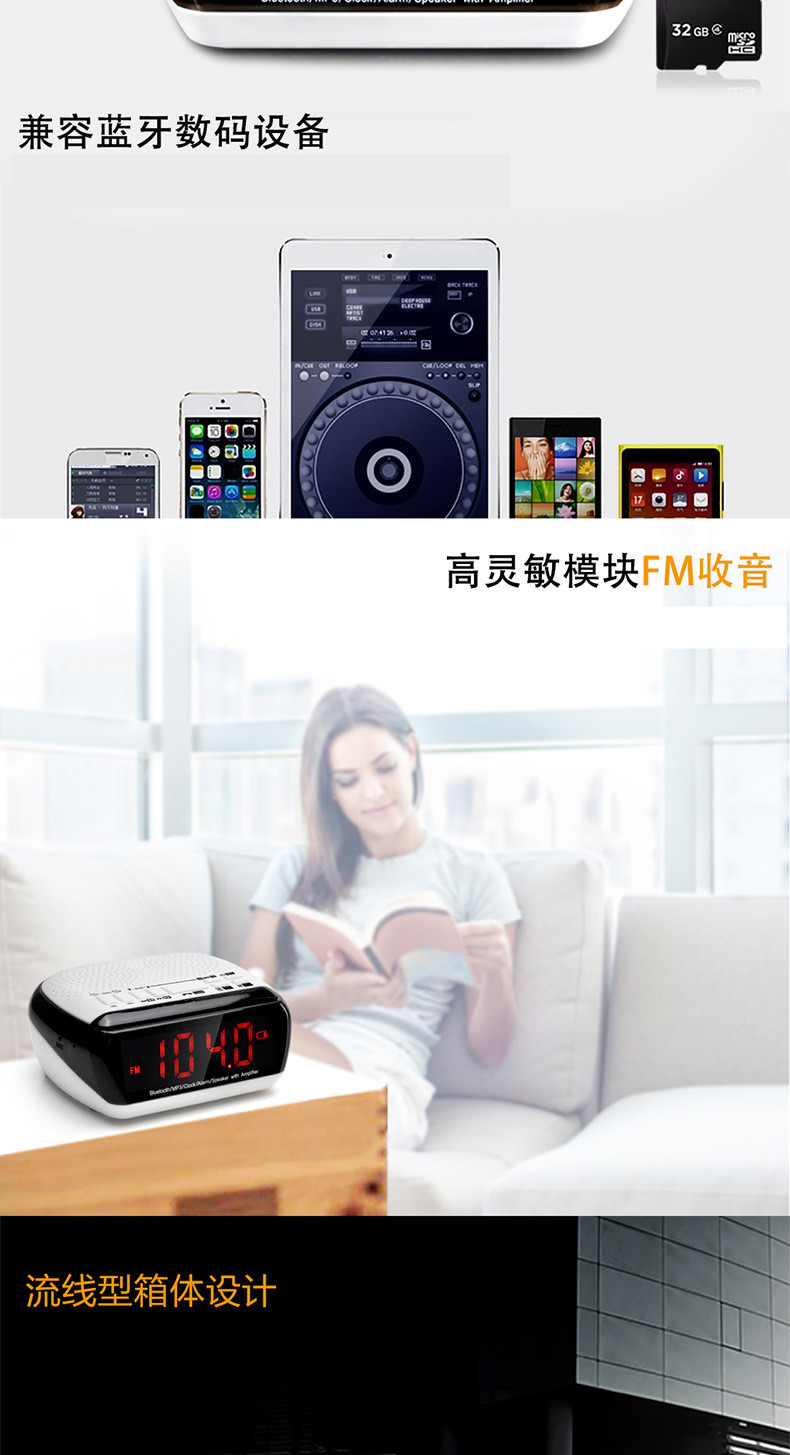 • 商品名称:硕兆 智能无线蓝牙音箱 重低音炮 便携式迷你电脑音响 台式创意闹钟 小钢炮户外插卡 TF内存卡收音机 白色