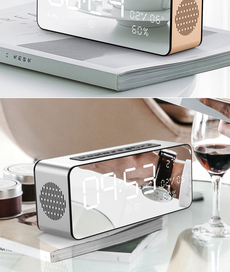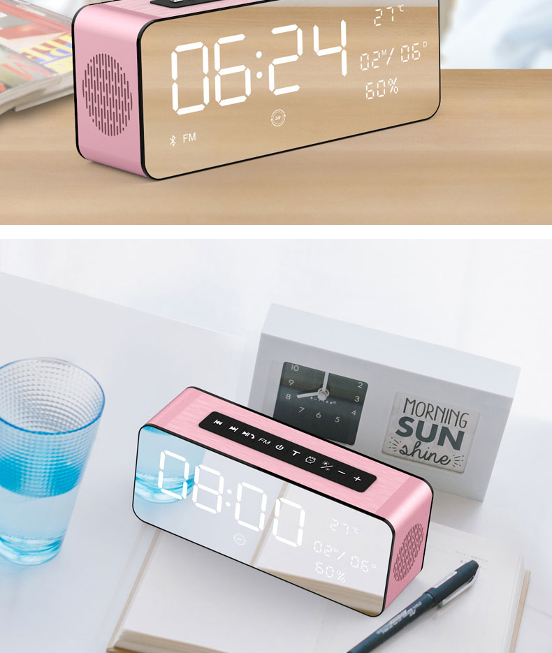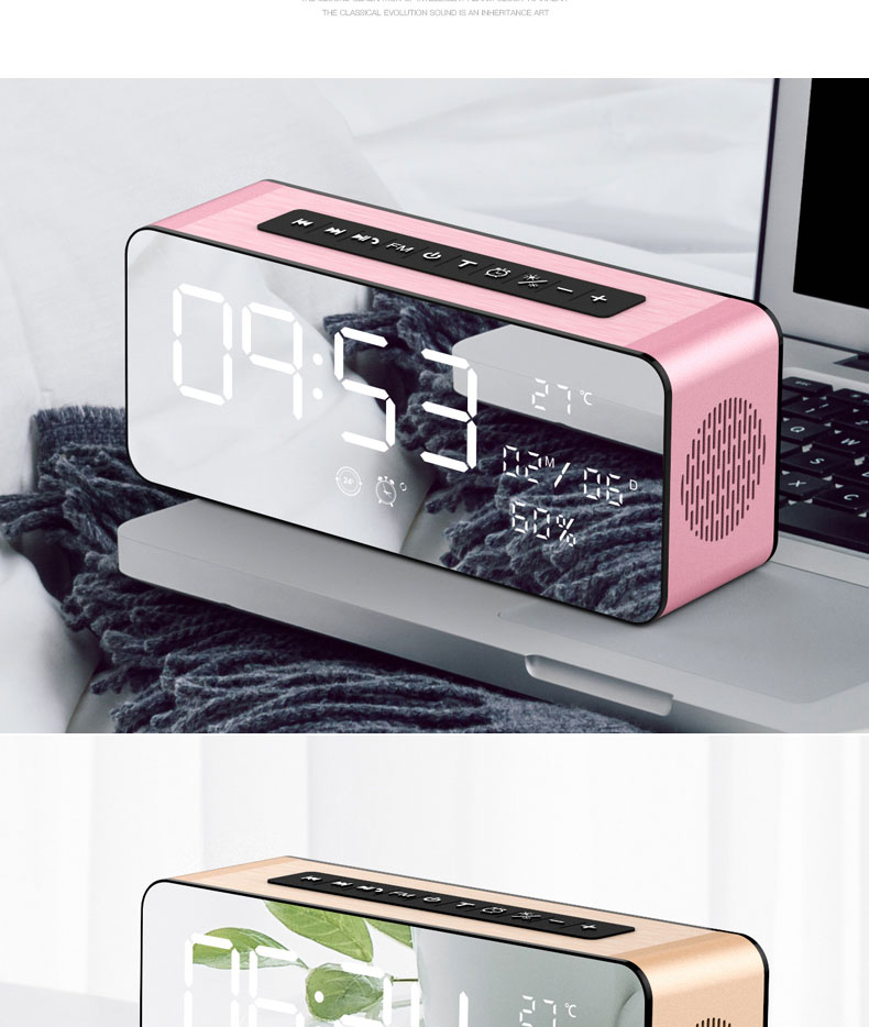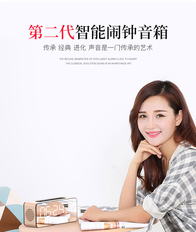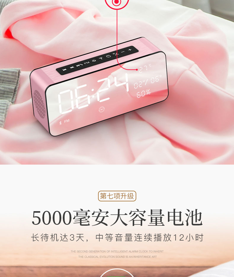 蓝牙音箱手机电脑插卡无线闹钟小钢炮迷你桌面小音响玫瑰金