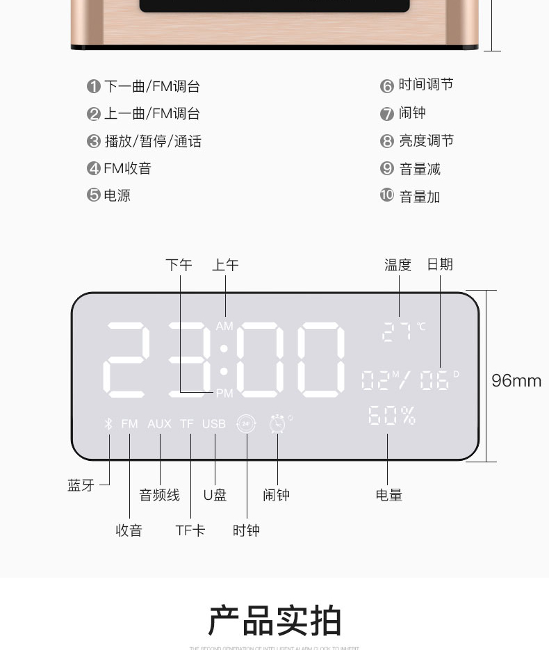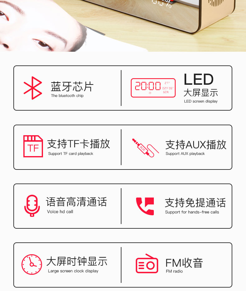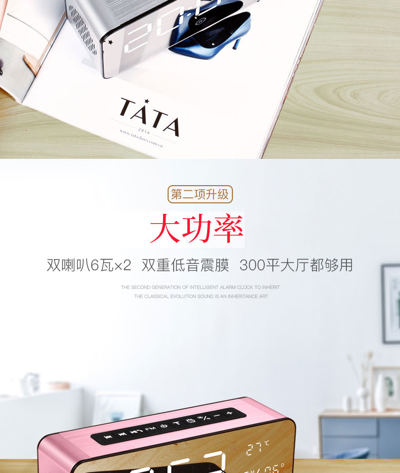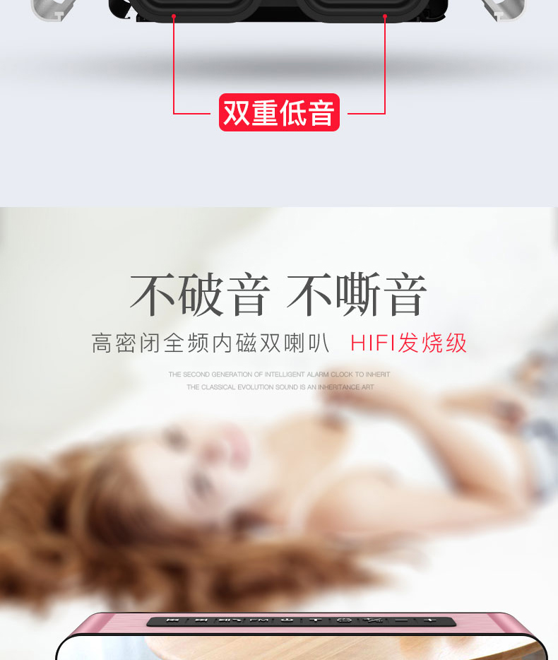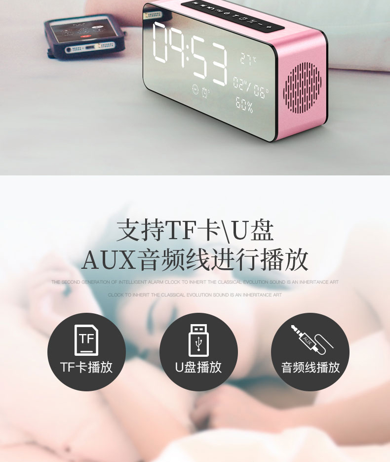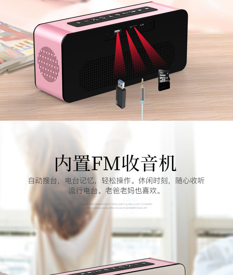• 商品名称:蓝牙音箱手机电脑插卡无线闹钟小钢炮迷你桌面小音响家用台式桌面智能户外便携低音炮 玫瑰金+16G内存卡(闪迪)